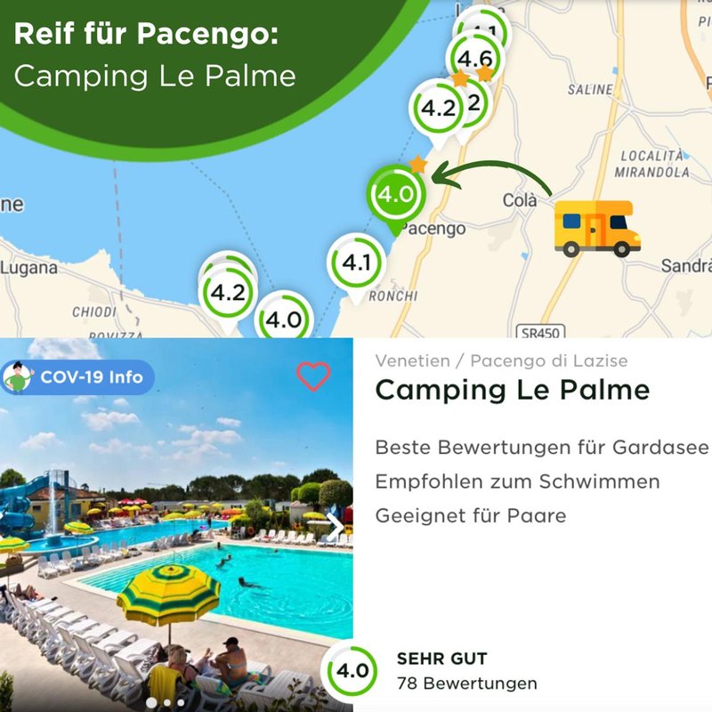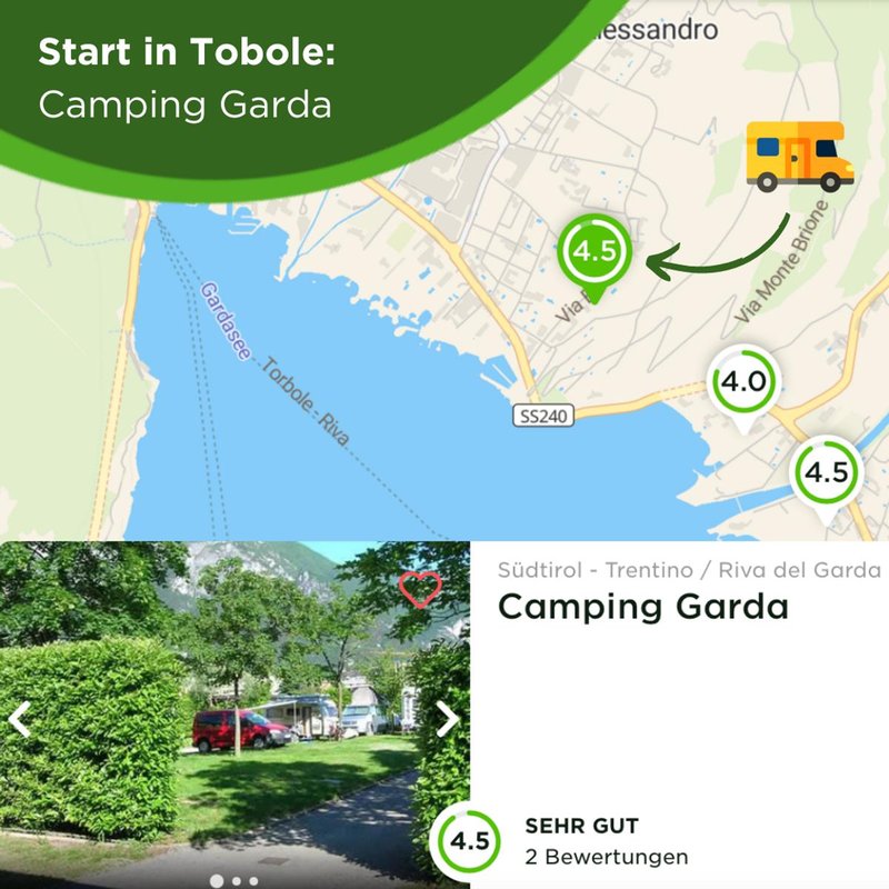 Alle gelisteten Plätze wurden von Campern auf camping.info, die bereits selbst am Gardasee gecampt haben, besonders gut bewertet.