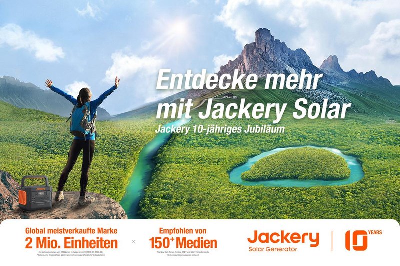 Solarenergie ist eine umweltfreundliche, kostengünstige Alternative zur herkömmlichen Energiegewinnung – und gerade bei den aktuell steigenden Energiekosten besonders gefragt. Jackery gehört weltweit zu den beliebtesten und besten Herstellern von Solargeneratoren und bietet Campern zum 10-jährigen Jubiläum besondere Rabatt-Angebote und Gewinnspiele.