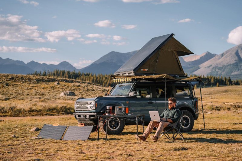 Jackery Solargenerator 1000: Das fortgeschrittene Modell bietet Campern mit 1002 Wh fast die doppelte Kapazität wie der Solargenerator 500. Die autarke Stromanlage verfügt über eine 230 V Schuko-Steckdose und kann Geräte wie Laptop oder Handy via USB-C aufladen. Empfehlenswert für eine 3 bis 4-tägige Campingreise.