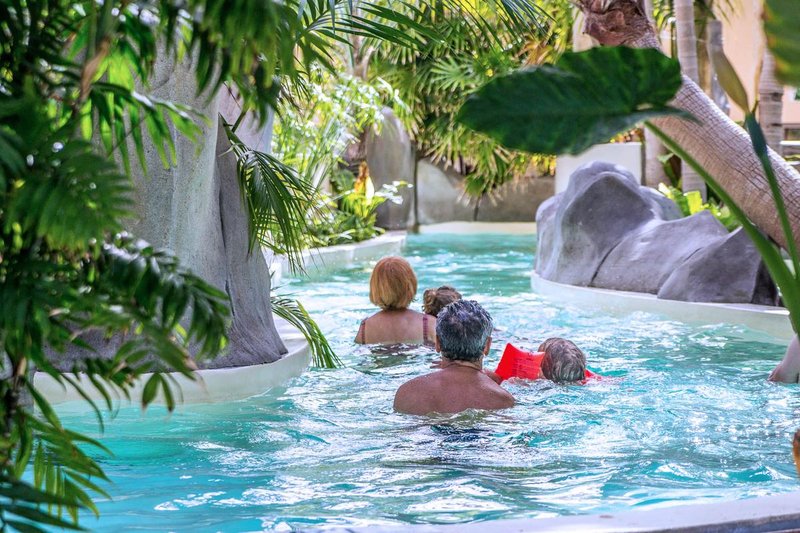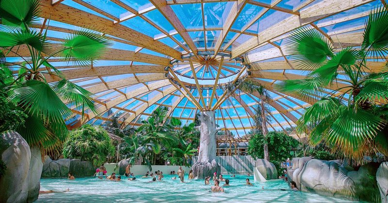 Eines der absoluten Highlights und eines wahre Besonderheit auf dem 5-Sterne-Campingplatz ist die riesige, tropische Badelandschaft. Von Strömungskanal und Whirlpool über große Schwimmbecken mit Kuppeldach und tropischen Pflanzen bis hin zu kinderfreundlichen Bereichen mit Rutschen für die kleinen Gäste – auf insgesamt 5000 qm erleben Jung und Alt den besten Badespaß im Campingurlaub.