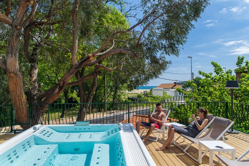 Ein Campingplatz, der alles bietet: Bois de Valmarie liegt auf einem Hügel mit Blick aufs Mittelmeer, nur 100 Meter vom Strand Le Racou und wenige Minuten vom Hafen von Argelès-sur-Mer entfernt. Hier trifft Naturidylle auf erstklassige Ausstattung – perfekt für einen entspannten Urlaub.
