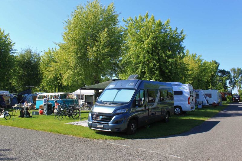 Der Platz bietet gut gepflegte Sanitäranlagen, auch für Kinder und barrierefreie Anlagen, einen Waschbereich mit Waschmaschinen und Trocknern sowie Ladestationen für Fahrräder und E-Bikes.