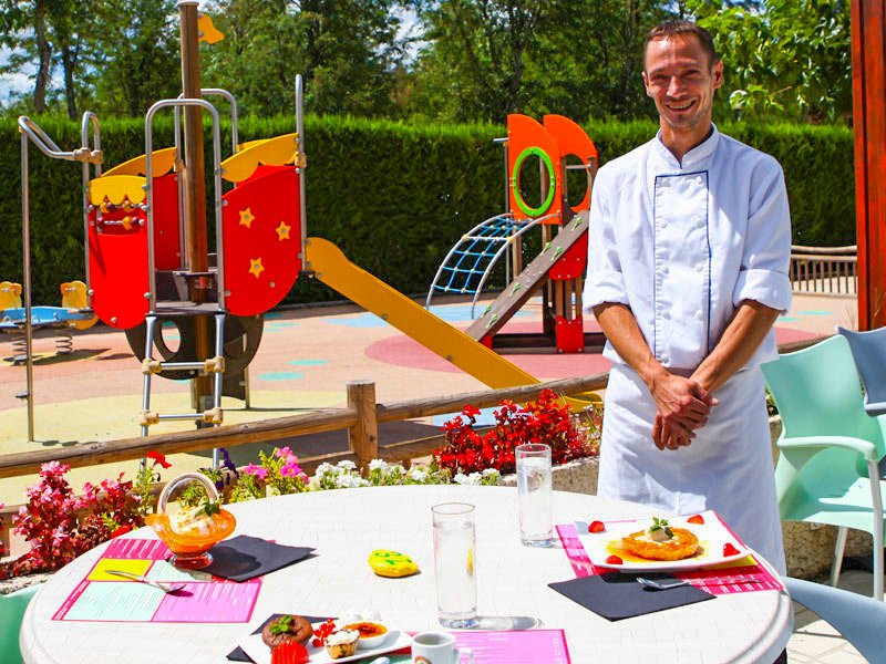 Für eine Eis- oder Kaffeepause geht es zur Snackbar am Pool – ideal für den kleinen Hunger zwischendurch. Abends lädt der Küchenchef mit seinem Team, neben den Klassikern der französischen und ländlichen Gerichte der Ardèche, zu hausgebackener Pizza, Burger, frischen Fisch- und Fleischgerichten sowie aufwändigen Brasserie-Menüs ein. Darf es vielleicht noch ein leckeres Dessert oder ein Kaffee zum Nachtisch sein, aber den Kindern ist schon langweilig? Direkt neben der Restaurantterrasse ist ein Spielplatz – praktisch, oder?