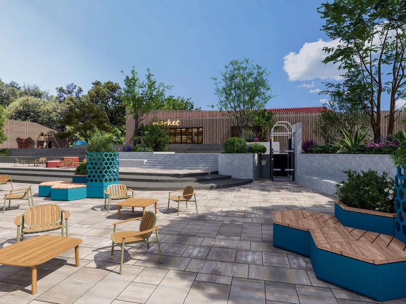 Campen ist am schönsten, wenn man es teilt: Der neue Hauptplatz ist dazu als Treffpunkt für Camper vorgesehen. Hier befinden sich ein Miniclub, verschiedene Läden, eine Bar und eine große Bühne.