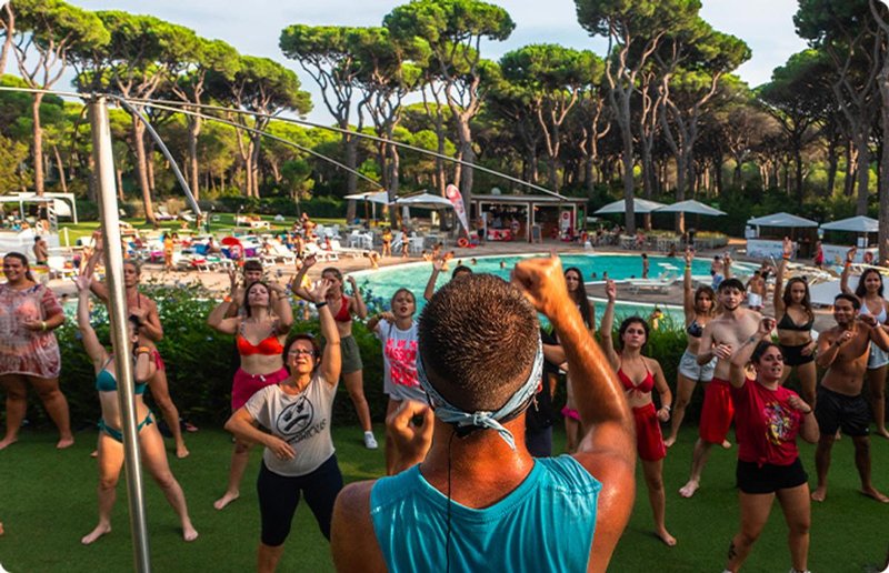Doch auch auf dem Platz ist für jede Menge Unterhaltung gesorgt: Ein großer Poolbereich zwischen den stattlichen Pinien sorgt rund um die Uhr für Erfrischung und Abwechslung, während du dich nebenan auf Liegestühlen oder in luxuriösen Day-Beds ausruhen kannst. An der Pool-Bar bekommst du Snacks, Cappuccino, Pizza und Gebäck sowie erfrischende Aperitifs. Falls dir nach Action ist, kannst du bei Spielen, Wassergymnastik und Kabarett mit dem Animationsteam viel Spaß haben. Außerdem findest du Beachvolleyball, Fußball und Basketball-Felder sowie Kurse für Bogenschießen und Cross-Training.