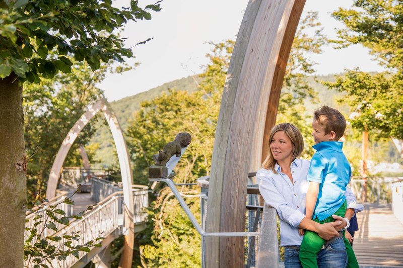 Der Baumwipfelpfad Saarschleife ist aber mehr als nur eine Aussichtsplattform: Entlang des Weges warten interaktive Stationen mit spannenden Fakten zur Natur und Geschichte der Region. Hast du zum Beispiel gewusst, dass die Saarschleife im Mittelalter von der Burg Montclair überwacht wurde? Die Ruinen sind heute noch zu besichtigen und erinnern daran, dass die Saar einst eine bedeutende Handelsroute war. Für die kleinen Entdecker gibt es außerdem eine Comic-Rallye, bei der sie spielerisch Fragen rund um die Natur und die Waldbewohner beantworten können und am Ende eine kleine Belohnung erhalten.