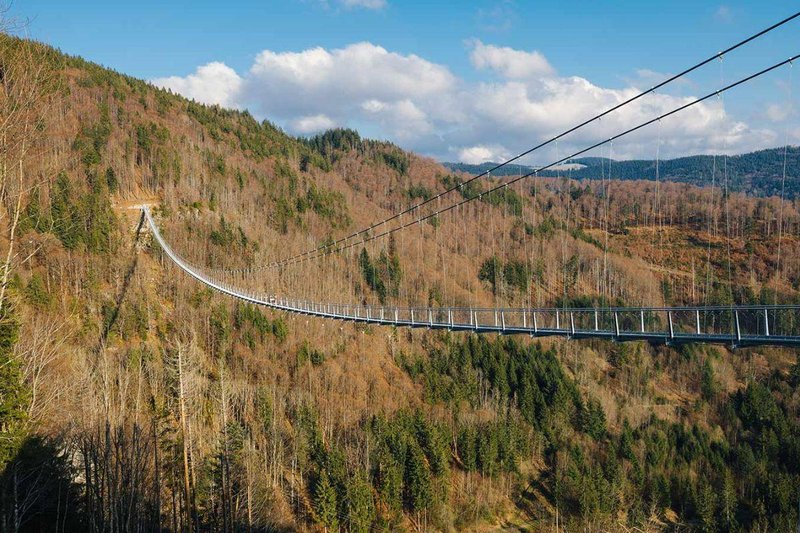 Mit einer Länge von 450 Metern und einer Höhe von 120 Metern über dem Boden ist die Blackforestline in Todtnau die drittlängste Hängebrücke Deutschlands. Sie schwebt hoch über dem Tal und bietet einen Blick auf die umliegenden Schwarzwaldgipfel.