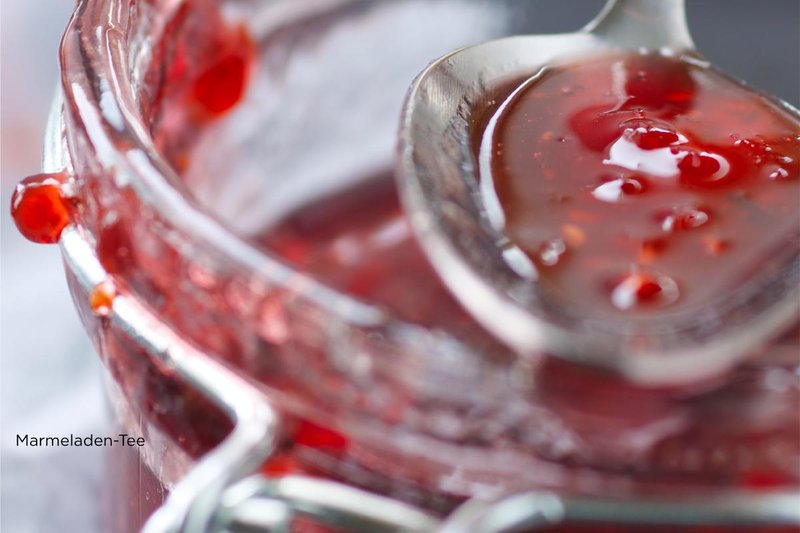 Einfach einen großen Löffel Marmelade in den Henkelbecher geben, mit kochendem Wasser aufgießen. Dann gut verrühren und heiß genießen. Egal, ob mit Quitten, Erdbeeren, Kirsche, Johannisbeeren oder was du sonst gerade da hast: Schmeckt mit jeder Marmelade oder Konfitüre.