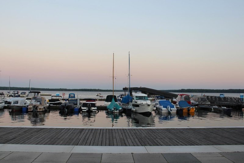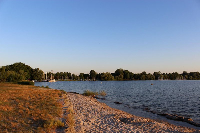 Unser Zelt haben wir auf der wunderbar schattigen Zeltwiese aufgebaut, übernachten kann man im Hafencamp aber auch mit Wohnmobil, in einer Hafenlodge oder einem Ferienzimmern und sogar hoch in den Wipfeln der Kiefern in einem der Baumhäuser. Mit dem praktischen Transponder kommt man direkt in den Familienpark nebenan. Dort gibt es einen Badestrand, der auch von den Campern im Hafencamp genutzt werden kann, außerdem findet ihr dort einige gastronomische Einrichtungen. Im Restaurant Seestern haben wir gut zu Abend gegessen und uns dann satt und zufrieden ins Zelt verkrochen.