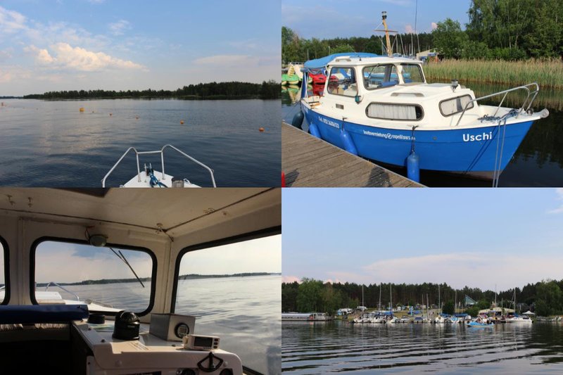Am nächsten Tag ging es wieder zurück zum Senftenberger See, diesmal ins Hafencamp. Wie der Name vermuten lässt, besitzt dieser Campingplatz eine eigene Marina. Camper und auch Tagesgäste können hier ihr Boot zu Wasser lassen. Obwohl wir natürlich kein eigenes Boot im Gepäck hatten, blieb uns eine Tour auf dem See trotzdem nicht verwehrt. Bei Expeditours direkt im Hafencamp konnten wir das Motorboot "Uschi" mieten und nach einer kurzen Einführung in See stechen.