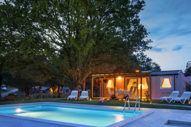 Wer sich ganz besonderen Komfort gönnen möchte, der kann auch eine Deluxe Unterkunft buchen: Mit einem Whirlpool auf der Terrasse bietet dir der Campingplatz Valkanela hier ein besonders luxuriöses Camping-Erlebnis.