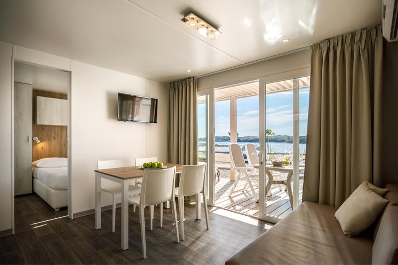 Wenn du mit der ganzen Familie anreist, mehr Platz benötigst oder Lust auf Komfort beim Campen hast, so stehen dir die wunderschönen, komplett ausgestatteten Mobilheime verschiedener Kategorien und Größen zur Auswahl. Alle Glamping-Unterkünften verfügen ist eine geräumige Terrasse, auf der du die kroatische Sonne genießen und dich voll und ganz erholen kannst.