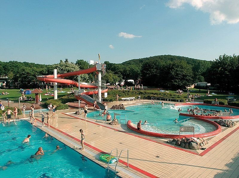 Entdeckt das Erlebnisbad und schwimmt ein paar entspannte Bahnen im Sportbecken, macht es euch auf der Sonnenwiese bequem oder lasst euch einfach von den Wellen tragen. Jagt mit euren Kids begeistert die kurvige Wasserrutsche hinab. Oder schaut entspannt zu, wie die Kleinen unterm Wasserpilz toben und die Kinderrutsche hinabsausen. Vielleicht entert euer Nachwuchs auch die Klettertürme auf dem Spielplatz – oder fordert euch zu einem Familienturnier auf der 18-Loch-Minigolf-Anlage heraus?