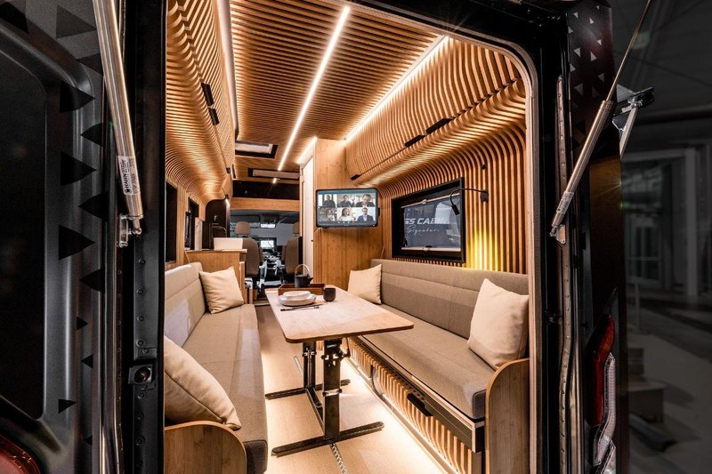 WOW – der Cross Cabin Signature ist nicht nur ein Highlight fürs Auge, sondern auch ein echtes Vorreiter Modell, wenn es es ums Thema mobiles Arbeiten im Fahrzeug geht. Der New Work Van wurde speziell für mobiles Arbeiten und Konferenzen optimiert, wobei höchste Ansprüche an Komfort, Design und Sicherheit erfüllt werden.