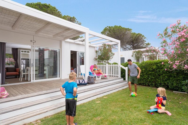 Camper ohne eigenes Zuhause auf vier Rädern sind in den modernen Mobilheimen beim Pino Mare bestens aufgehoben. Aus insgesamt neun verschiedenen Kategorien und 300 Mietobjekten kannst du die für dich perfekte Unterkunft für bis zu sechs Personen auswählen. Alle Mobilheime verfügen über eine eigene Küchenzeile, komfortable Schlafzimmer, moderne Badezimmer und eine große Terrasse.