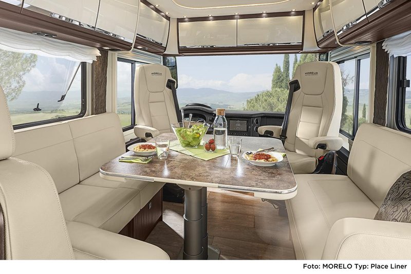 Das Gefrierfach, der 2- oder 3-Flammenherd in Heimküchenqualität der Camping-Küche, der Flachbild-Fernseher, die LED (Ambiente-)Beleuchtung, die elektrische Trittstufe, Fliegengitter an Türen und Fenstern oder die Plissee Fahrerhausverdunklung – wir denken, das kann man inzwischen kaum noch als Luxus bezeichnen, gehören solche Dinge doch oft schon zum Lieferumfang der normalen Grundausstattung. Immer mehr Luxusmobile stocken auch mit Home-Office-Möglichkeiten im Fahrzeug auf, was eine Workation aud dem Campingplatz problemlos möglich macht.