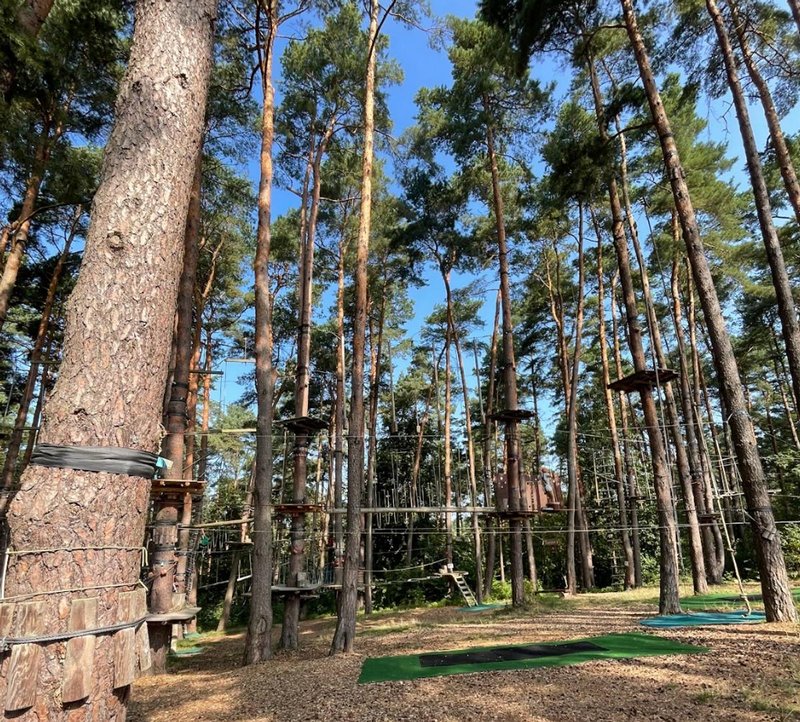 Besonders beeindruckend fanden wir den platzeigenen Hochseilklettergarten, wo du dich an 7 verschiedenen Parcours sowie 4 Kleinkind-Parcours inmitten der Kiefernwälder testen kannst. Leider hatten wir zu wenig Zeit, um hier selbst zu klettern – aber wie gesagt, wir wollen ja unbedingt nochmal wiederkommen …