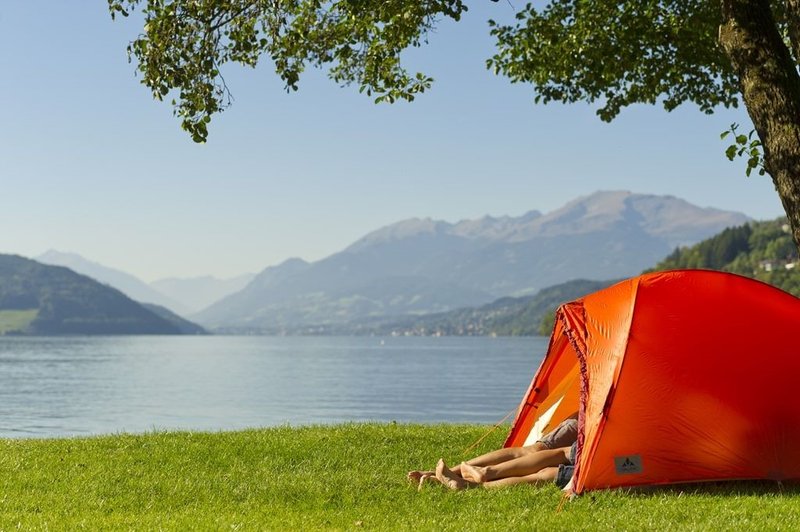 Die Natur zu jeder Zeit unverfälscht und unmittelbar erleben – das geht nirgends besser als beim Camping. In Kärnten findet ihr über 100 Campingplätze. Viele davon befinden sich direkt an einem der bis zu 28 Grad warmen Badeseen, am Fuße der Alpen oder romantisch am Flussufer. Vom kleinen, einfachen Campingplatz bis hin zur großen Luxusanlage mit Wellnessbereich ist in Kärnten alles vertreten – so findet jeder das passende Urlaubs-Zuhause. Verschiedene Mietunterkünfte mit besonderem Flair machen auf vielen Plätzen auch einen Aufenthalt mit leichtem Gepäck möglich. So entschied sich das Paar aus unserer Geschichte für ein gemütliches Biwak aus duftendem Zirbenholz am Millstätter See. Vom Bett aus hat man eine wunderschöne Sicht auf den See und kann von der Terrasse aus das bunte Treiben auf dem Campingplatz beobachten.
