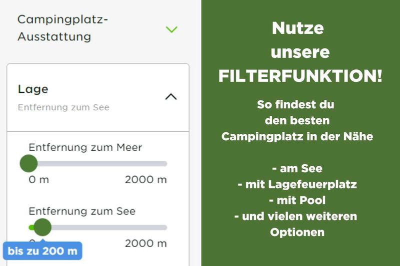 Und keine Sorge wenn in deiner Heimat keine Campingplätze liegen sollten: Wenn das der Fall ist, gibt es nämlich eine automatische Umkreissuche, mit der du die Campingplätze mit der geringsten Entfernung zu dir findest.