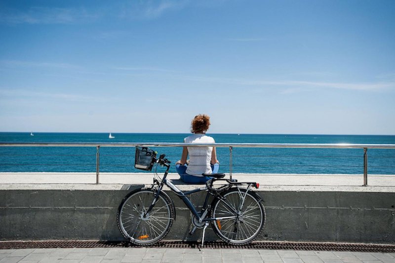 Frau mit Rad am Strand © Canva