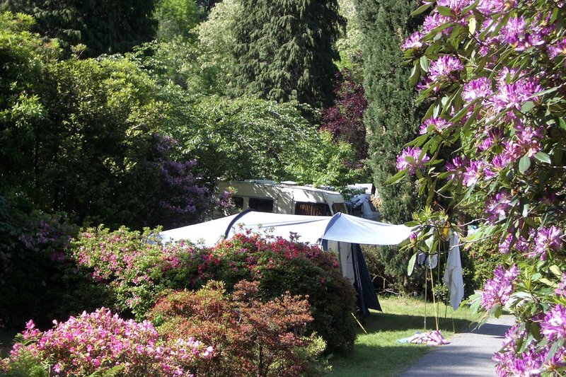 Romantik pur in Piemont - Auf einem Campingplatz urlauben, der einem botanischen Garten gleicht mit einer Vielzahl seltener Pflanzen und einem idyllischen Schwimmbad am Ufer des Cannobino Flusses. Der Platz ist nur einen kurzen Spaziergang vom Stadtzentrum entfernt.
