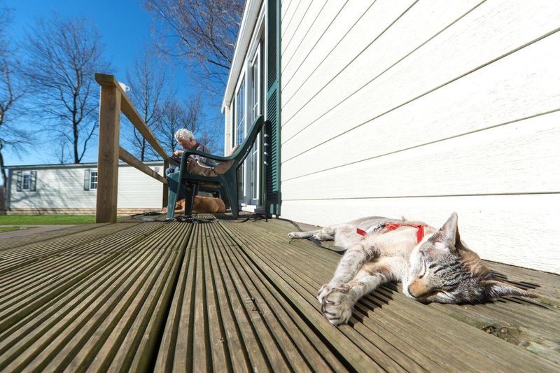 Frag außerdem beim Campingplatz nach einem möglichst schattigen Stellplatz am Rand der Anlage. Dort ist es meist etwas ruhiger und mehr Platz zum Herumstreunen. Doch vergiss nicht: Nicht alle Camper sind Katzenfreunde. Beachte die Platzregeln und nimm Rücksicht auf deine Camper-Nachbarn. So gelingt ein friedliches Miteinander. Halte dein Haustier möglichst im Auge, damit es nicht unerwünschter Weise den Stellplatz wechselt. Am besten hast du auch immer ein kleines Foto von deiner Katze bei dir, falls sie mal nicht allein nach Hause findet. Falls deine Samtpfote auch ohne Leine raus darf, ist es sinnvoll, eine Katzenklappe in den Wohnwagen zu integrieren. Alles klar soweit? Dann Schmusedecke und Lieblingsspielzeug eingepackt und los geht’s!