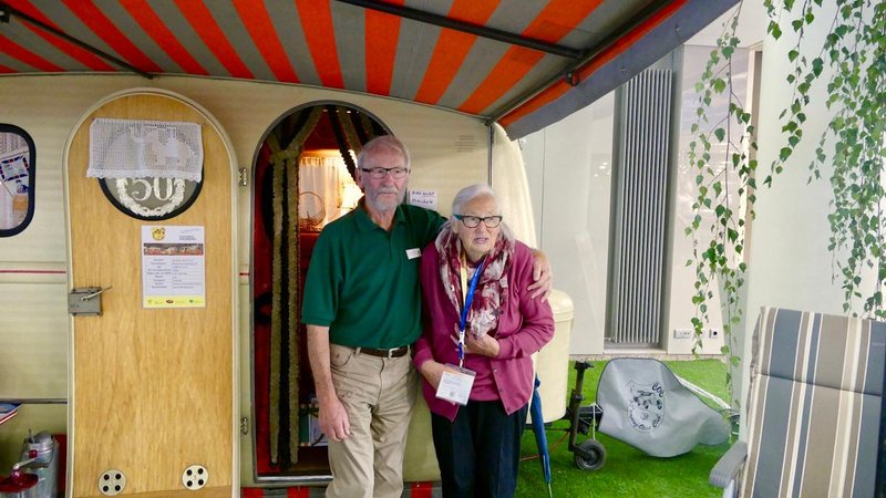 Annemarie & Karl-Heinz Paumen vor ihrem Oldtimer-Wohnwagen