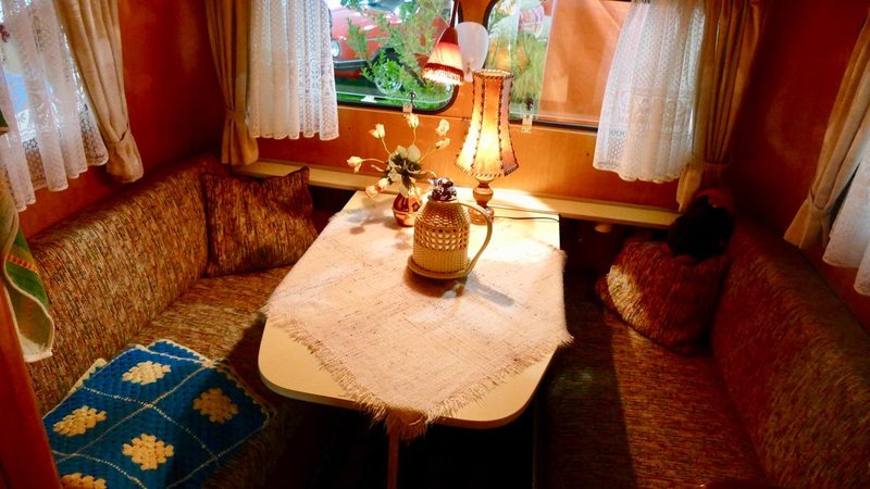 Im Inneren des Wohnwagens ist die Einrichtung noch komplett original