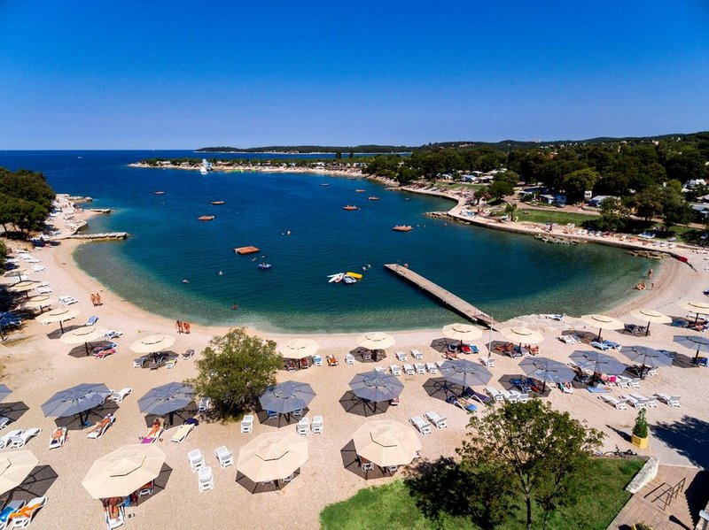 Not far from Rovinj is the 5 km or so long Valalta beach, which draws holidaymakers in with its quiet, picturesque bays that are perfect for swimming. As is typical of Croatia, the beach is a shingle beach, but there are also sandy areas that are particularly popular with families with children because of its shallow waters at the edge of the sea.
