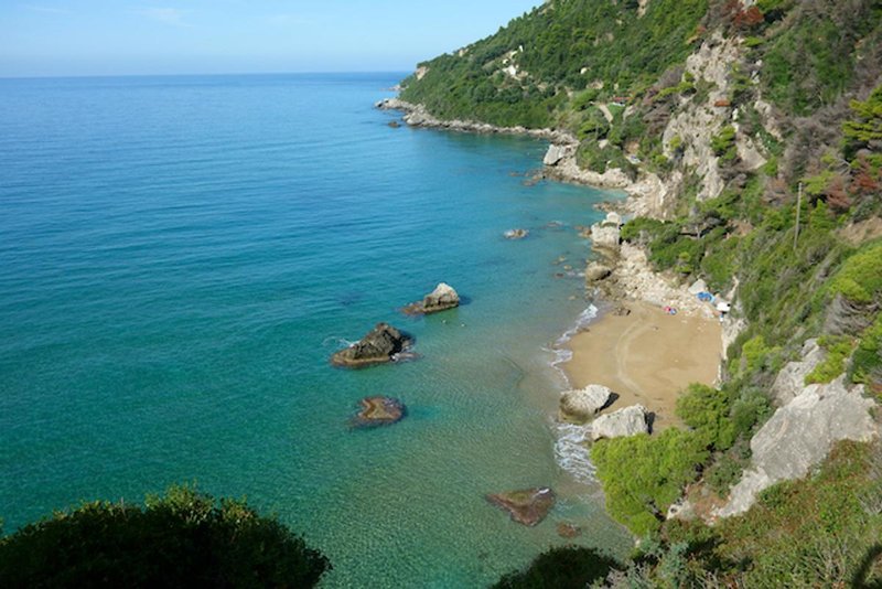 While the hilltop Monastery of Panagia Mirtiotissa presides over naturist bathers, these naked mermaids and mermen experience true paradise made up of soft sand and turquoise-blue waters. What more could your heart desire?