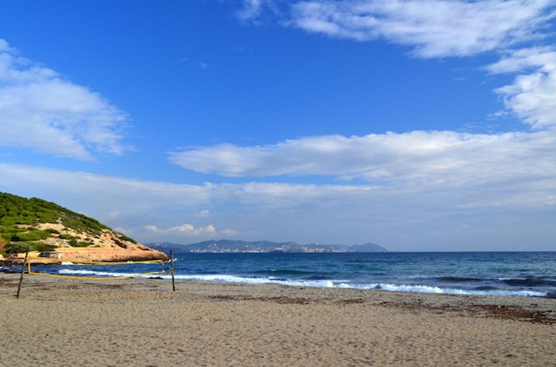 It’s a gorgeous beach with white sand and high waves, where a beach bar with deckchairs and beach beds are necessities. And as is typical of Ibiza, there are always parties going on. Plus, there are dunes and pine trees to help create a bit more privacy. You’ll find a selection of campsites on Ibiza on our site.