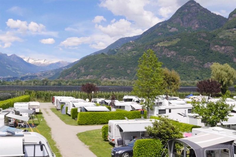 Umgeben von den wunderschönen Bergen und vielen Obstbaumplantagen (hier gibt es Äpfel satt – auch gern zum Probieren!), bietet dir der camping.info Award-Gewinner einen super Mix aus Erholung und Naturerlebnis. Seit 1972 begrüßt der 1,7 Hektar große Platz Camper von nah und fern im schönen Meraner Land. Die meisten kommen immer wieder zurück – und das aus gutem Grund: