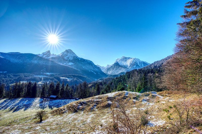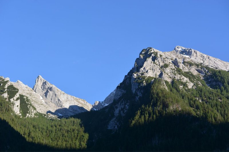 Startpunkt vieler Touren ist das Hintersee-Gebiet in Ramsau. Von dort geht es durch dichte Bergwälder und vorbei an glasklaren Bächen hinauf in eine spektakuläre Hochgebirgslandschaft. Doch auch ohne Gipfelsturm lohnt sich ein Besuch: Zahlreiche Wanderwege bieten atemberaubende Ausblicke auf den Hochkalter und die umliegenden Bergriesen.