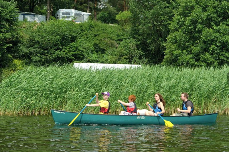Neben der Übernachtung direkt am See kommst du vor allem auf dem Wasser in den besonderen Genuss der Mecklenburgischen Seenplatte. Als eines der schönsten Wasserwandergebiete Deutschlands eignet sich die Seenplatte hervorragend für Kanutouren und zum Wasserwandern. Erwachsene und Kinder werden mit professioneller Betreuung des Kanu-Teams zu sicheren Kanuten und können mit gemieteten Booten in See stechen. Doch der Woblitzsee oder der Badeteich mit Sandstrand und Piratenschiff eignen sich natürlich auch wunderbar zum Baden, Toben und Spielen für Jung und Alt.