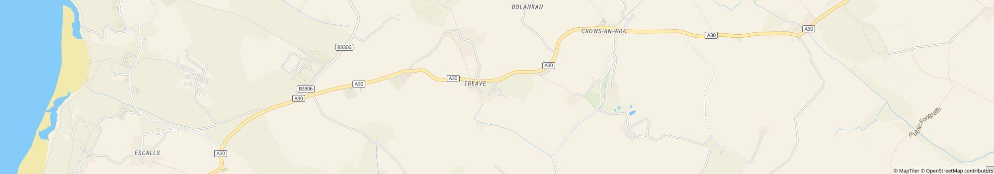 Lower Treave is located just off the A30, midway between Penzance and Lands End. From Penzance continue through the village of Crows-An-Wra and the sight is sign-posted 1/2 mile beyond, on the left hand side.